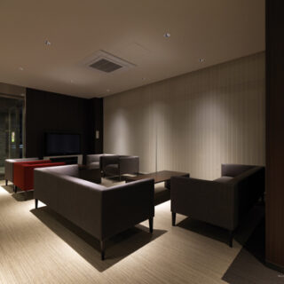 隣接する既存の温泉施設との共同利用を想定していたため、一階と二〜四階のデザインを変えることで平屋建ての温泉施設との施設としての一体感を演出しました。